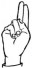 На ћирилици написано НОВАК БУМБАРЕВИЋ састоји се из 15 слова [?]. Исписано ћириличном једноручном азбуком за глувонеме: